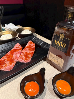 もっこりもくもく木曜日✨️✨️ おはなだよ🌼 大好き焼肉♡ 大好き卵黄♡ 大好きアネホ♡🥃笑 あっこちらはバーではなく 焼肉屋さんです。笑 最近食欲が止められなくて 常に何か食べてて 本当に太っている。笑 困っている。笑 誰か私の食欲をおさえてくださーーーい🥹 今週あと【木・金】おります🥰 あいにきてね 🌼