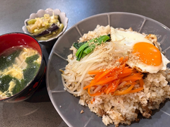 💚ビビンバ 💚えのきワカメたまごスープ 💚ナスの煮びたし 最近疲れすぎて短時間でも爆睡してる😇 明日休みだからがんばろーう、/span> 逗凄椙政裾性椙成 縺輔h