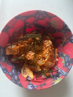 豆乳の水分が飛んだら唐辛子パウダーを入れて適当にチーズ、のり、ゴマとか入れたら完成です!