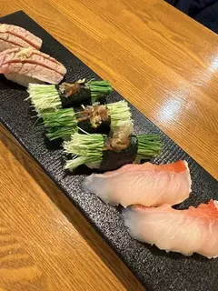 久しぶりにお寿司食べてきたよ♪大好きな芽ねぎ!!普段食べない中トロの炙りとキンメも美味しかった🍣