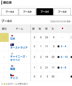 日本が準々決勝進出
