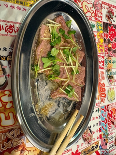カウンターでレバ刺し🐥