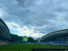滝行っていうのはサッカー応援用語で雨の日に屋根のないエリアで応援すること。