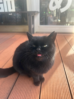おはようございます☀️ さわです👶🏻 お店にいた猫ちゃんが可愛すぎた件🐈⬛🖤 自ら撫でに来てくれて ずーっとべろ出てて可愛すぎた💞 そろそろ猫カフェ行きたくなってきた/•᷅•᷄¥੭ さわ