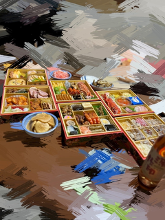 私は親戚の家でおせちを食べました(*’~'*)ŧ‹”ŧ‹”