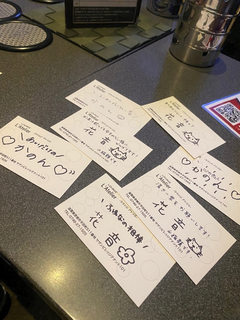 こんばんは( * ॑꒳ ॑*)ノ⋆⟡.·🌙*゜ この前の待機時間🧎🏻 ねぇねの名刺を みんなで書き書き🗒ᝰ✍🏻 ̖́- 誰がもらえるかなぁー💭💕 本日もご来店お待ちしております💁🏻♀️💖 ⛄️ふゆな❄️