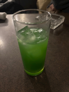 地元のお店で毎年のむのがこちら名前は みどりの で出てくるよー!抹茶のリキュールにグレープフルーツジュースで割ったお酒みたいですさっぱりしていておいしー🟢