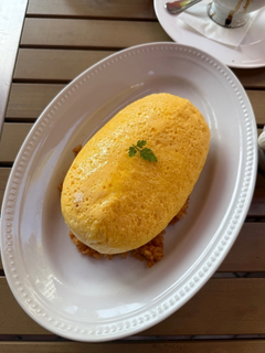 オムライスしゅわしゅわですごかった🥚 チキンライスめっちゃすき テラス席最高😆