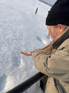 のんが北海道で雪に手形つけて喜んでる写真🥹