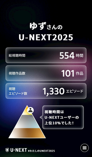 U-NEXT視聴🤣今年も上位に食い込む事ができました⋆⸜(* ॑꒳ ॑* )⸝ユーネクストだけでこれなので他も含めたら凄いです。笑笑