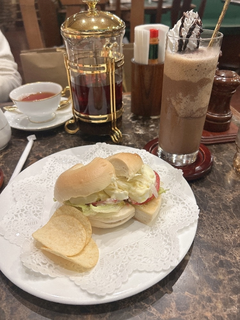 モッツァレラチーズとトマトのベーグルサンドとコーヒーフローズン?です!