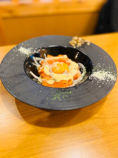 スモークサーモンカルボナーラユッケ!面白い発想💡笑