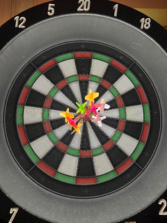 写真は、ダーツバーでなんとなくハウスダーツ9本使ってブルに向かって投げたやーーーつ!!🎯