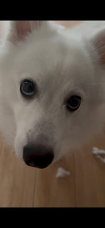こんばんは🌛 ベッドの綿出して遊んでた犬🐶 だめだよって言ったらこの顔されたからすぐ許しちゃった